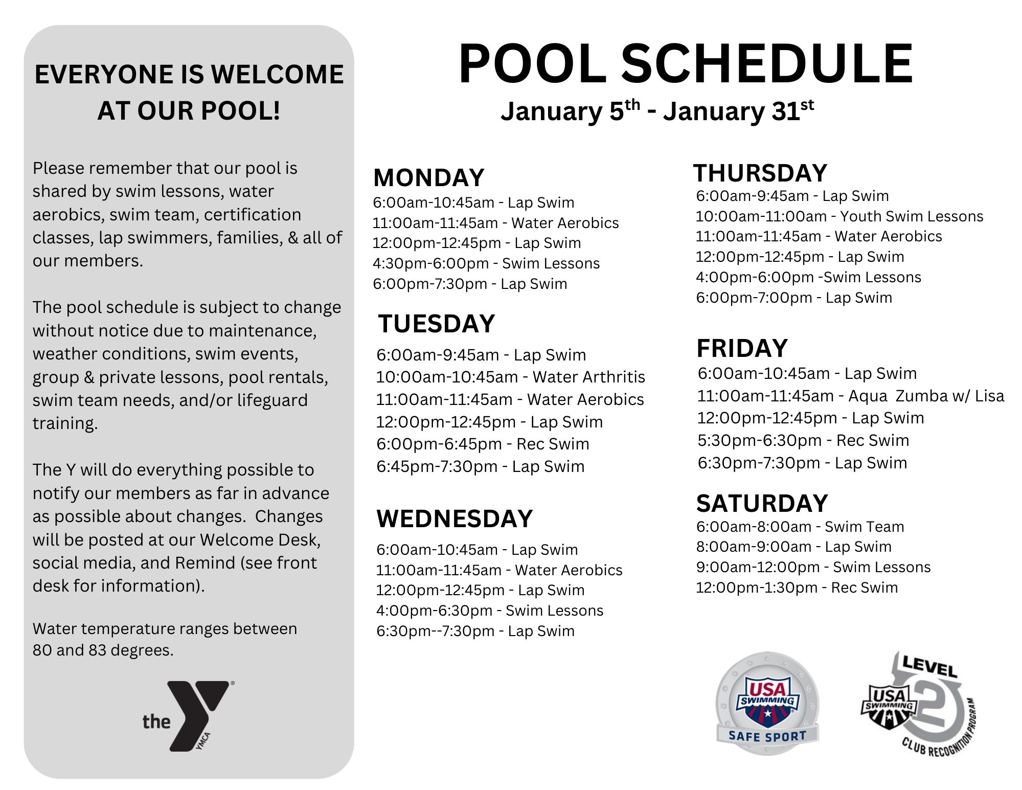 NO REC SWIM NOR LAP SWIM JAN 27TH
